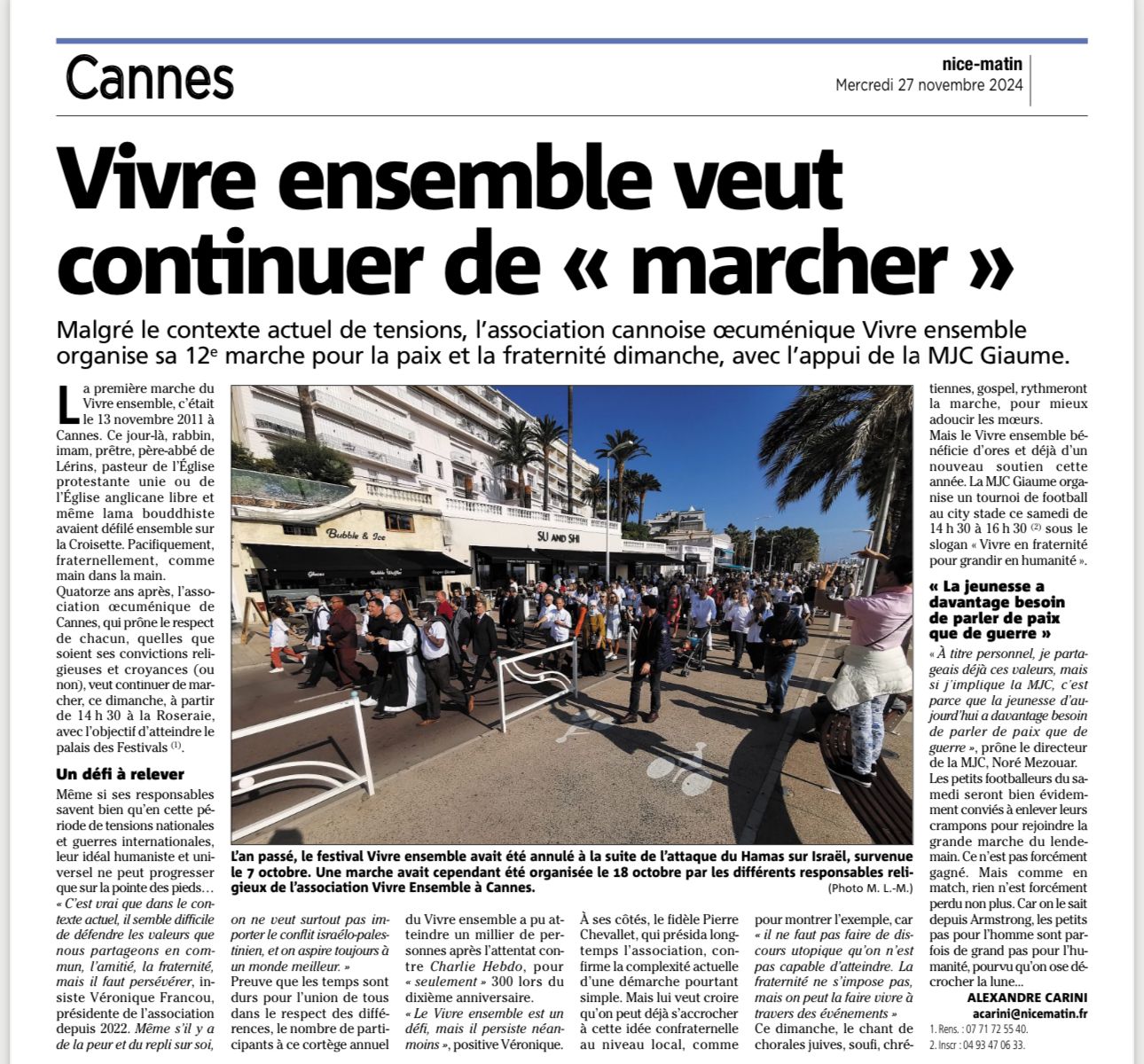 Colloque VIVRE ENSEMBLE A CANNES 12 avril 2026